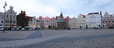 Sehenswert sind der Marktplatz mit dem klassizistischen Rathaus, die Wismarer Wasserkunst und das Bürgerhaus "Alter Schwede", sowie das Stadtgeschichtliche Museum ""Schabbelhaus". Bemerkenswert ist auch der Fürstenhof aus der Backsteinrenaissance, reich verziert mit Terrakotten.